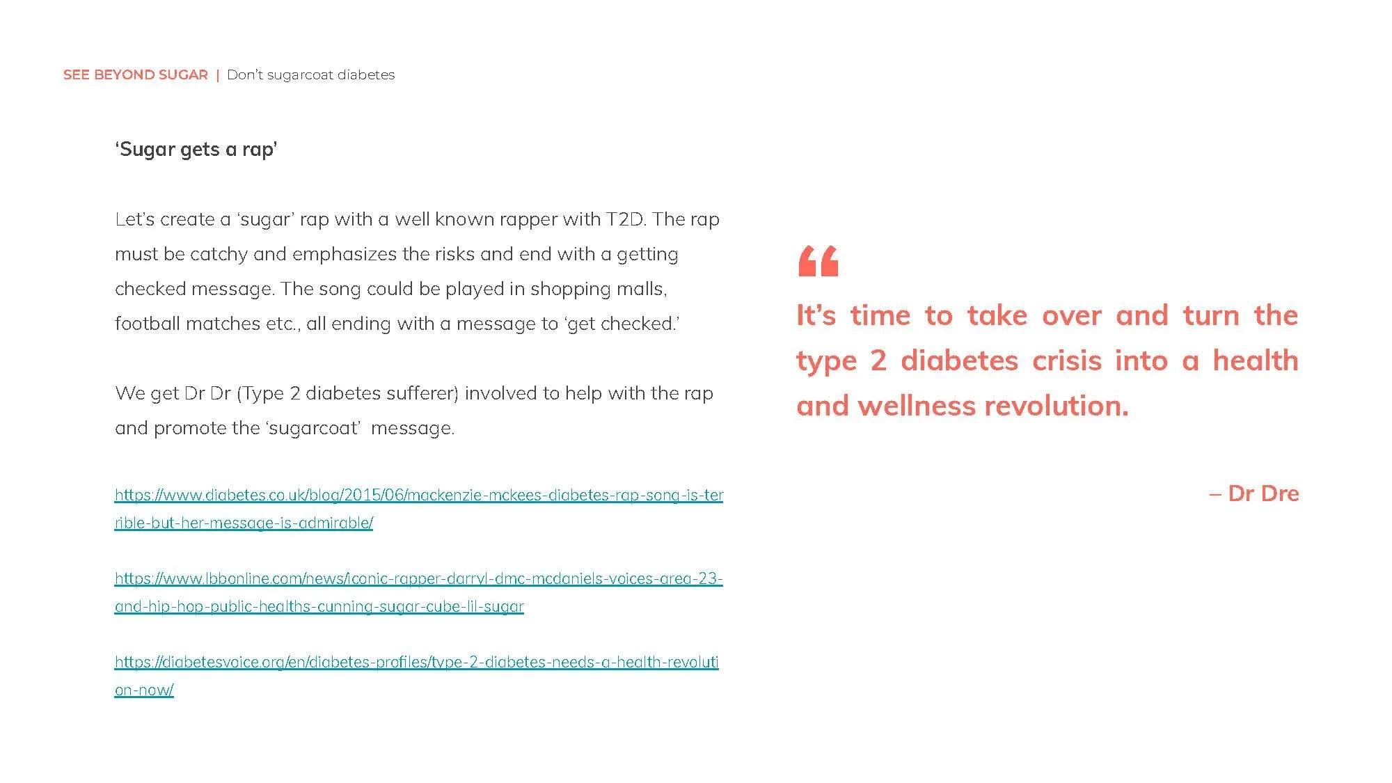 Having Type 2 diabetes can be scary. So how did AstraZeneca make the UK public more aware and entice them to ‘get checked’? For starters, treat the topic of ‘sugar’ in more surprising ways. And to keep them intrigued, do something unexpected…like a rap/slam poem, ‘Don’t sugarcoat it’.